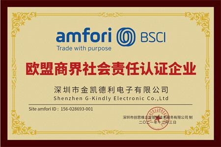 祝深圳市金凱德利電子有限公司通過社會責任BSCI審核驗廠,創思維為每一位通過amfori BSCI驗廠的客戶制作送上牌匾。